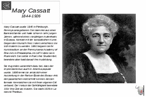 | Mary Cassatt Powerpoint (3.42 MB) 1schöne Digitalbilder → Kunst → Maler Da ich selbst einmal gezeichnet-gemalt habe, habe ich mit 50 ausgewählten Künstler, die in den letzten 5 Jahrhunderten einzigartige Kunstwerke erschufen, eine PowerPoint-Serie erstellt. (Nr. 32, Mary Cassatt, 1844-1926) | schöne Digitalbilder → Kunst → Maler | 25.02.23-09:01 | ||