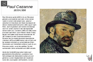 | Paul Cezanne Powerpoint (4.18 MB) schöne Digitalbilder → Kunst → Maler Da ich selbst einmal gezeichnet-gemalt habe, habe ich mit 50 ausgewählten Künstler, die in den letzten 5 Jahrhunderten einzigartige Kunstwerke erschufen, eine PowerPoint-Serie erstellt. (Nr. 29, Paul Cezanne, 1839-1906) | schöne Digitalbilder → Kunst → Maler | 26.02.23-14:57 | |||
