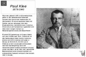 | Paul Klee Powerpoint (3.39 MB) schöne Digitalbilder → Kunst → Maler Da ich selbst einmal gezeichnet-gemalt habe, habe ich mit 50 ausgewählten Künstler, die in den letzten 5 Jahrhunderten einzigartige Kunstwerke erschufen, eine PowerPoint-Serie erstellt. (Nr. 41, Paul Klee, 1879-1940) | schöne Digitalbilder → Kunst → Maler | 26.02.23-14:57 | |||