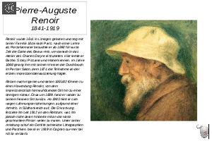 | Pierre-Auguste Renoir Powerpoint (3.63 MB) 2schöne Digitalbilder → Kunst → Maler Da ich selbst einmal gezeichnet-gemalt habe, habe ich mit 50 ausgewählten Künstler, die in den letzten 5 Jahrhunderten einzigartige Kunstwerke erschufen, eine PowerPoint-Serie erstellt. (Nr. 31, Pierre-Auguste Renoir, 1841-1919) | schöne Digitalbilder → Kunst → Maler | 28.02.23-16:33 | ||