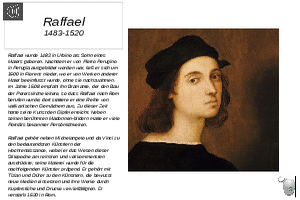 | Raffael Powerpoint (3.5 MB) schöne Digitalbilder → Kunst → Maler Da ich selbst einmal gezeichnet-gemalt habe, habe ich mit 50 ausgewählten Künstler, die in den letzten 5 Jahrhunderten einzigartige Kunstwerke erschufen, eine PowerPoint-Serie erstellt. (Nr. 07, Raffael, 1483-1520) | schöne Digitalbilder → Kunst → Maler | 28.02.23-16:33 | |||