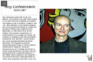 | Roy Lichtenstein Powerpoint (3.42 MB) 1schöne Digitalbilder → Kunst → Maler Da ich selbst einmal gezeichnet-gemalt habe, habe ich mit 50 ausgewählten Künstler, die in den letzten 5 Jahrhunderten einzigartige Kunstwerke erschufen, eine PowerPoint-Serie erstellt. (Nr. 49, Roy Lichtenstein, 1923-1997) | schöne Digitalbilder → Kunst → Maler | 01.03.23-09:26 | regulus | |