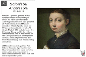 | Sofonisba Anguissola Powerpoint (3.24 MB) schöne Digitalbilder → Kunst → Maler Da ich selbst einmal gezeichnet-gemalt habe, habe ich mit 50 ausgewählten Künstler, die in den letzten 5 Jahrhunderten einzigartige Kunstwerke erschufen, eine PowerPoint-Serie erstellt. (Nr. 10, Sofonisba Anguissola, 1535-1625) | schöne Digitalbilder → Kunst → Maler | 01.03.23-09:26 | |||