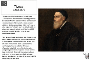 | Tizian Powerpoint (3.47 MB) 1schöne Digitalbilder → Kunst → Maler Da ich selbst einmal gezeichnet-gemalt habe, habe ich mit 50 ausgewählten Künstler, die in den letzten 5 Jahrhunderten einzigartige Kunstwerke erschufen, eine PowerPoint-Serie erstellt. (Nr. 08, Tizian, 1488-1576) | schöne Digitalbilder → Kunst → Maler | 03.03.23-12:21 | regulus | |