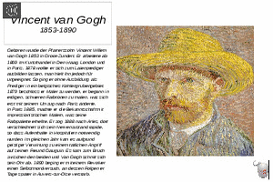 | Vincent van Gogh Powerpoint (3.96 MB) 18schöne Digitalbilder → Kunst → Maler Info vom Blogersteller: "Da ich selbst einmal gezeichnet-gemalt habe, habe ich mit 50 ausgewählten Künstlern, die in den letzten 5 Jahrhunderten einzigartige Kunstwerke erschufen, eine PowerPoint-Serie erstellt. (Nr. 35, Vincent van Gogh, 1853-1890)" | schöne Digitalbilder → Kunst → Maler | 03.03.23-12:21 | ||