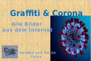 | Graffiti Corona Powerpoint (9.02 MB) 25schöne Digitalbilder → Kunst → Straßenkunst Lauter kunstvolles Graffiti mit Corona-Motiven. | schöne Digitalbilder → Kunst → Straßenkunst | 05.12.21-15:54 | Jaga | |