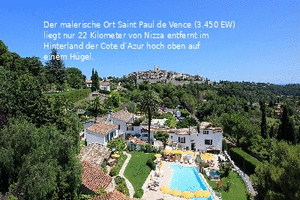| Der malerische Ort Saint Paul de Vence Powerpoint (12.8 MB) 33schöne Digitalbilder → Reisen, Länder, Städte → Kontinente → Europa → Frankreich und Städte Das mittelalterliche Dorf mit rund 3.500 Einwohnern thront auf einer kleinen Anhöhe und ist umgeben von einem gut erhaltenen Befestigungswall aus dem 16. Jahrhundert. Diese Stadt sollte man sich auch mal ansehen. Die Bilder machen große Lust darauf. | schöne Digitalbilder → Reisen, Länder, Städte → Kontinente → Europa → Frankreich und Städte | 08.04.21-22:57 | lori | |
