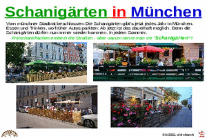 | Münchner Schanigärten Powerpoint (3.1 MB) 30schöne Digitalbilder → Reisen, Länder, Städte → Kontinente → Europa → Deutschland und Städte Wenn in nächster Zeit die Außen-Gastronomie wieder öffnen kann bzw. schon offen hat, haben sich in München letztes Jahr die Schanigärten bewährt! Vielleicht eine Anregung für andere Städte. Hier Bilder von 2020! | schöne Digitalbilder → Reisen, Länder, Städte → Kontinente → Europa → Deutschland und Städte | 10.05.21-16:39 | old-church | |