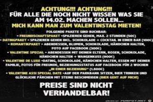 | Für den Valentinstag buchen Bild (133.09 KB) 10Lustiges → klasse Sprüche und Witze und Valentinstag | Lustiges → klasse Sprüche und Witze und Valentinstag | 30.01.22-09:48 | Emilia | |