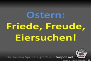| Zu Ostern Bild (52.37 KB) 10Lustiges → klasse Sprüche und Witze und Ostern Ich wünsche dir heute einen wunderschönen Ostersonntag mit vielen bunten Eiern ;-) | Lustiges → klasse Sprüche und Witze und Ostern | 30.03.21-14:22 | ||