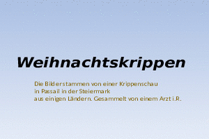 | Weihnachtskrippen 1 Powerpoint (2.82 MB) 18schöne Digitalbilder → Verschiedenes → Anlässe → Weihnachten Es gibt ganz viele unterschiedliche Arten von Weihnachtskrippen. Einige davon zeigen dir diese Aufnahmen. | schöne Digitalbilder → Verschiedenes → Anlässe → Weihnachten | 08.12.22-22:50 | ertr1 | |