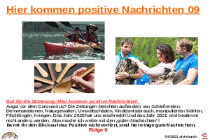 | Hier kommen positive Nachrichten 09 Powerpoint (1.47 MB) 43schöne Digitalbilder → Verschiedenes Schlechte Nachrichten gibt es genug. Positive sind selten. Hier einige von denen... Folge 9! | schöne Digitalbilder → Verschiedenes | 04.08.21-20:29 | old-church | |