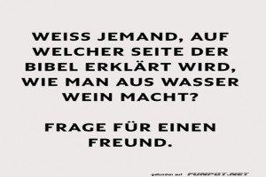 | Wie macht man aus Wasser Wein? Bild (42.78 KB) von Valentina am 07. April 2026 um 08:09 Uhr Lustiges → klasse Sprüche und Witze | Lustiges → klasse Sprüche und Witze | heute-08:09 | Valentina | ||