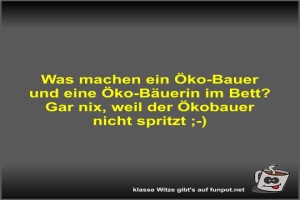 | Was machen ein Öko-Bauer und eine Öko-Bäuerin im Bett? Bild (25.98 KB) von Fossy am 05. April 2026 um 10:07 Uhr Lustiges → klasse Sprüche und Witze | Lustiges → klasse Sprüche und Witze | 05.04.-10:07 | Fossy | ||